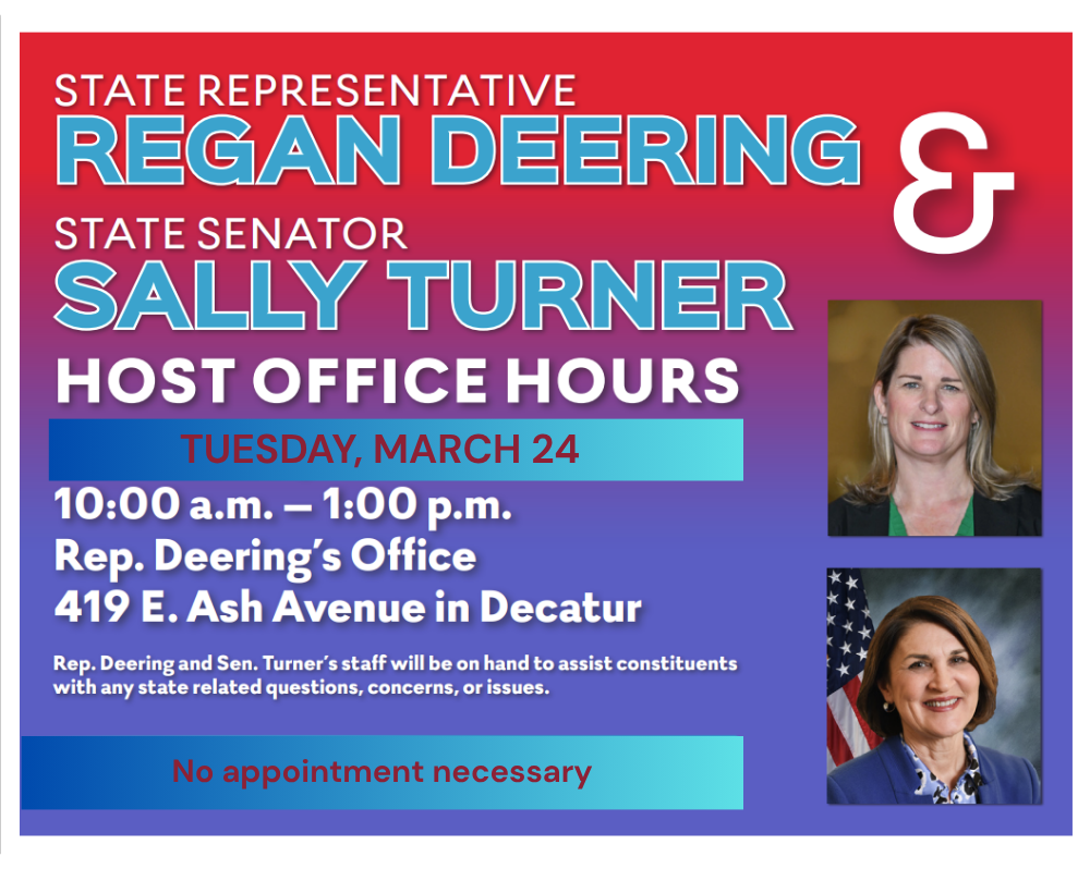 Join Sen. Turner’s and my staff at my Decatur office for Traveling Office Hours on Tuesday, March 24th from 10am to 1pm. Our offices will be available to answer any…
